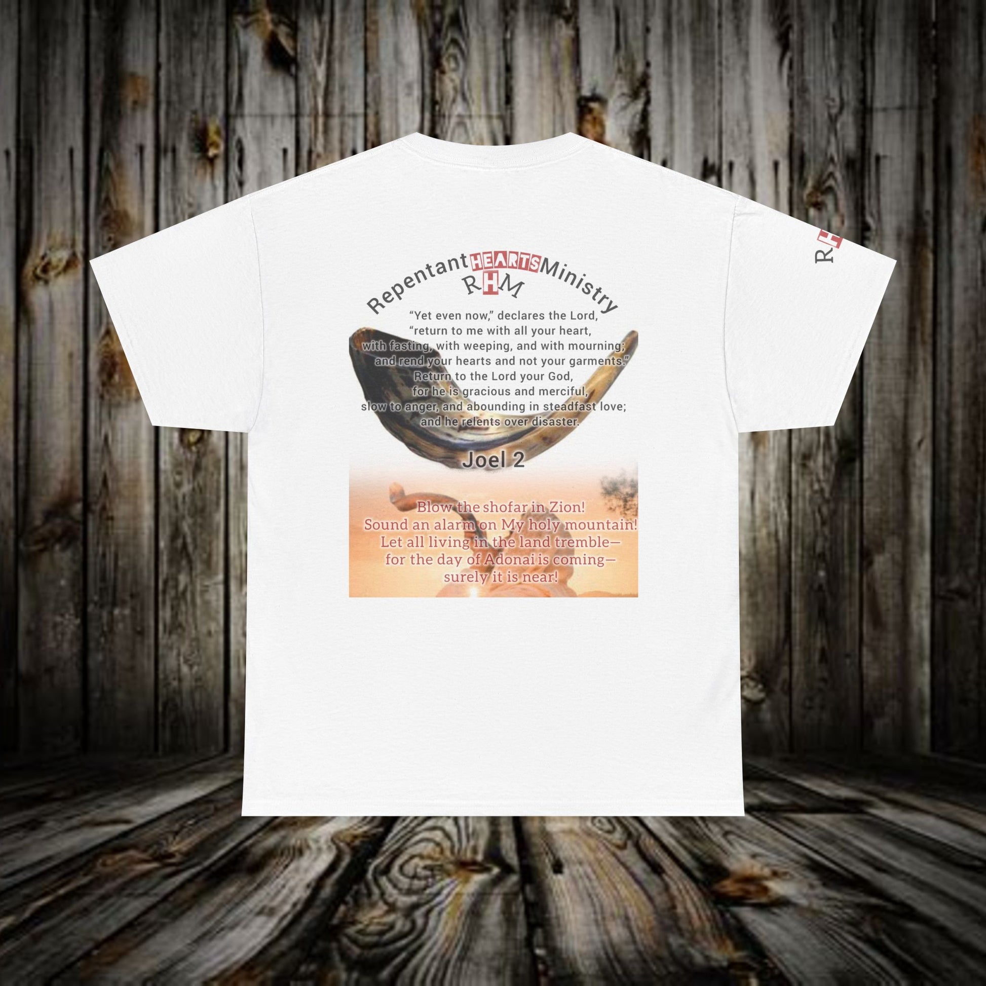 Biblical- Repentant Hearts Ministry T‑Shirt — Christian Tee with Scripture & Shofar Design