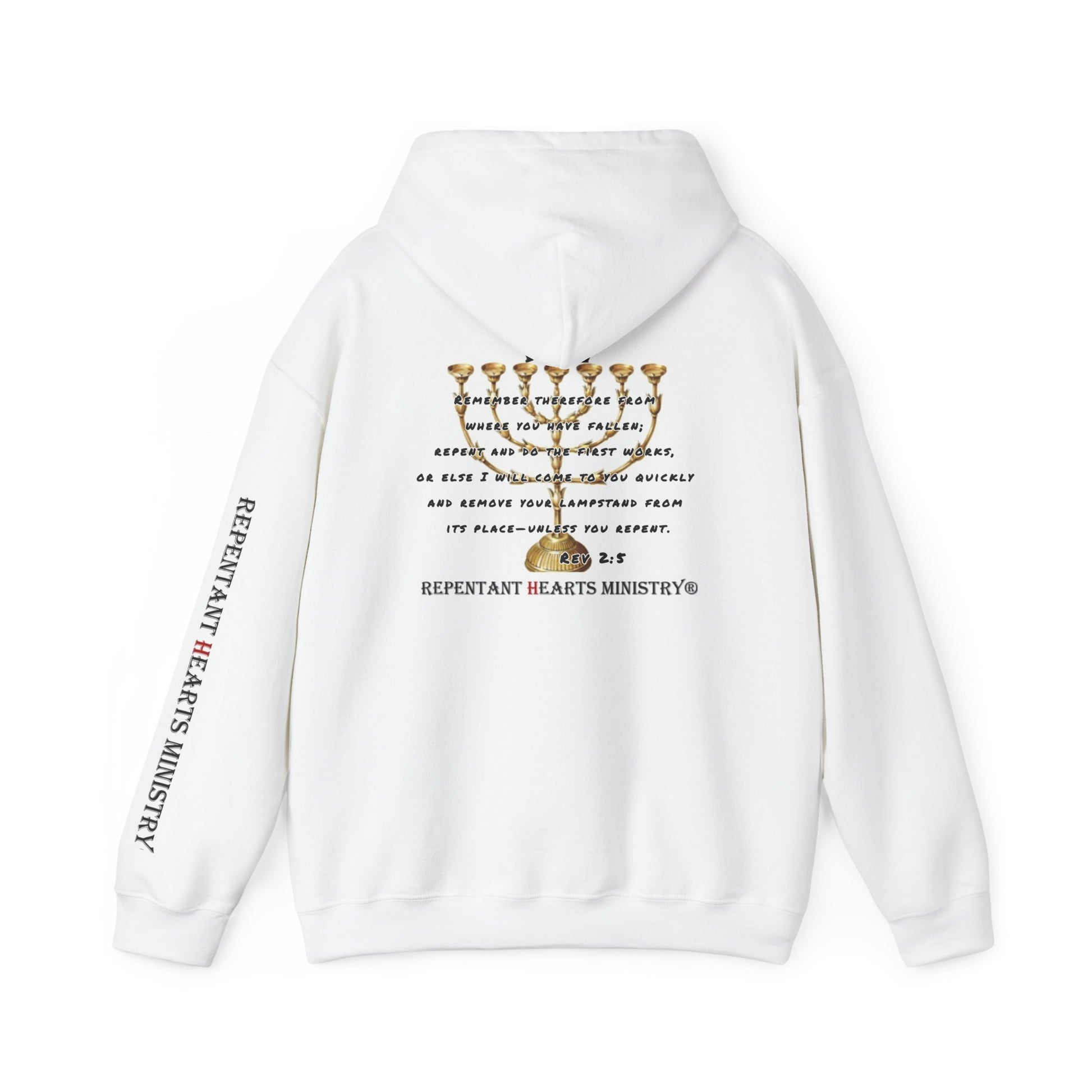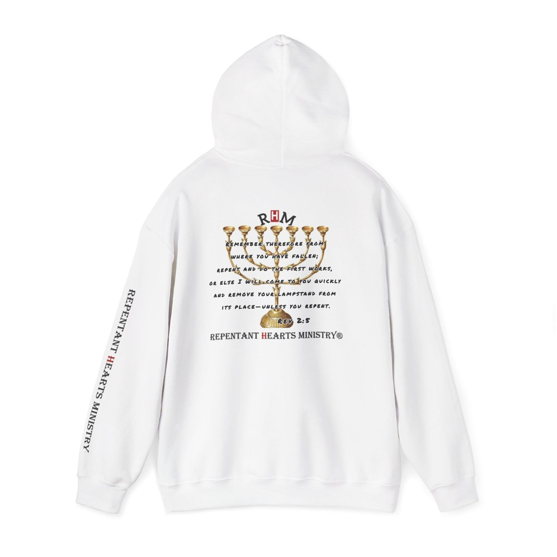 Rev 2:5- Hoodie-Repentant Hearts Ministry Hoodie — RHM Logo & Menorah Script Pullover