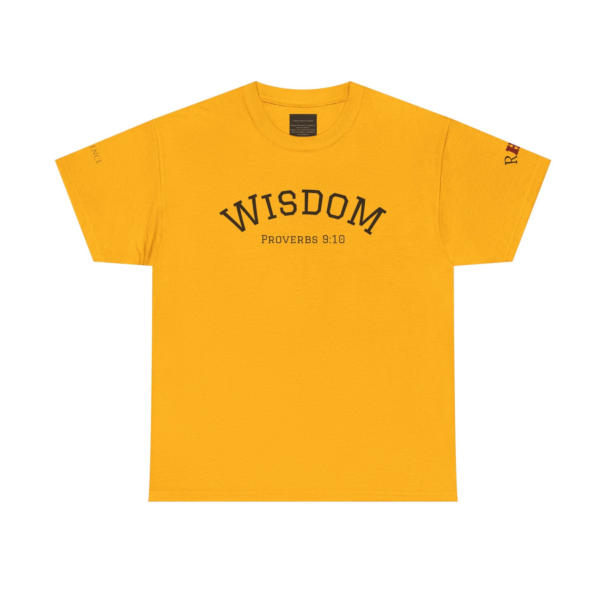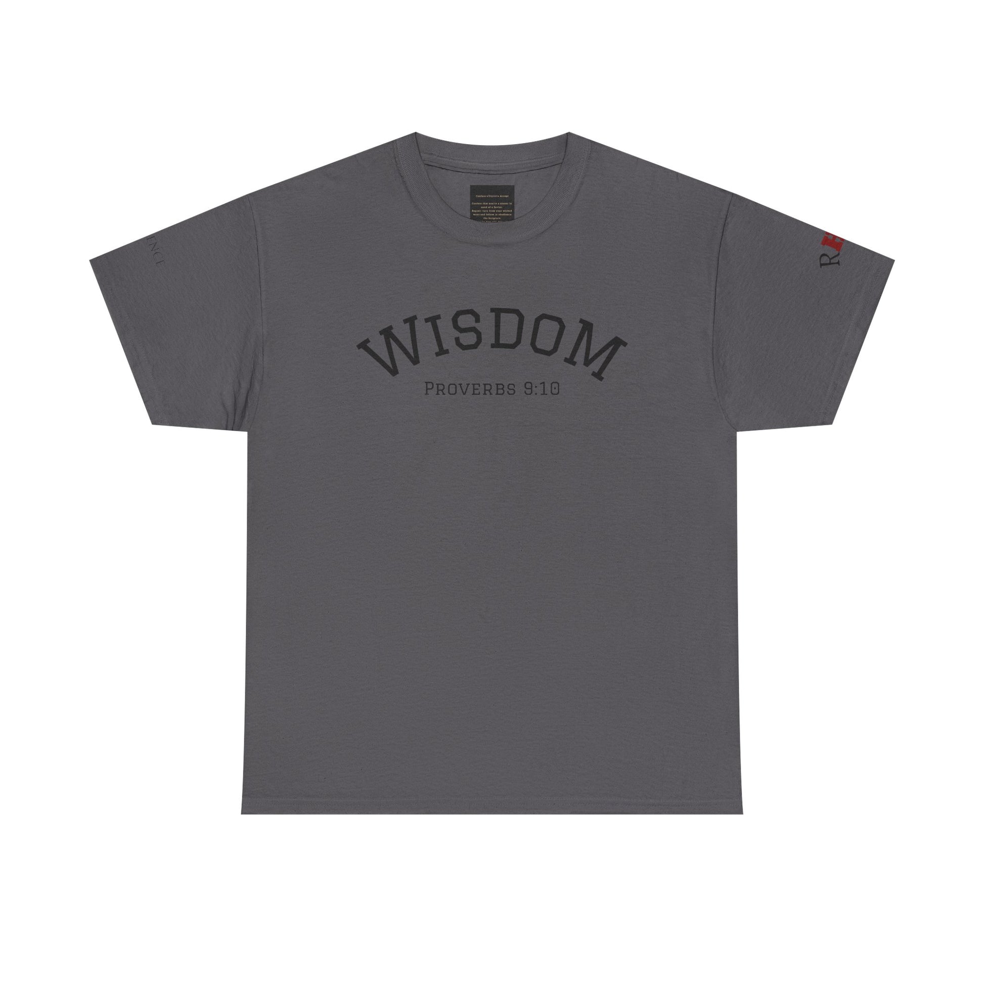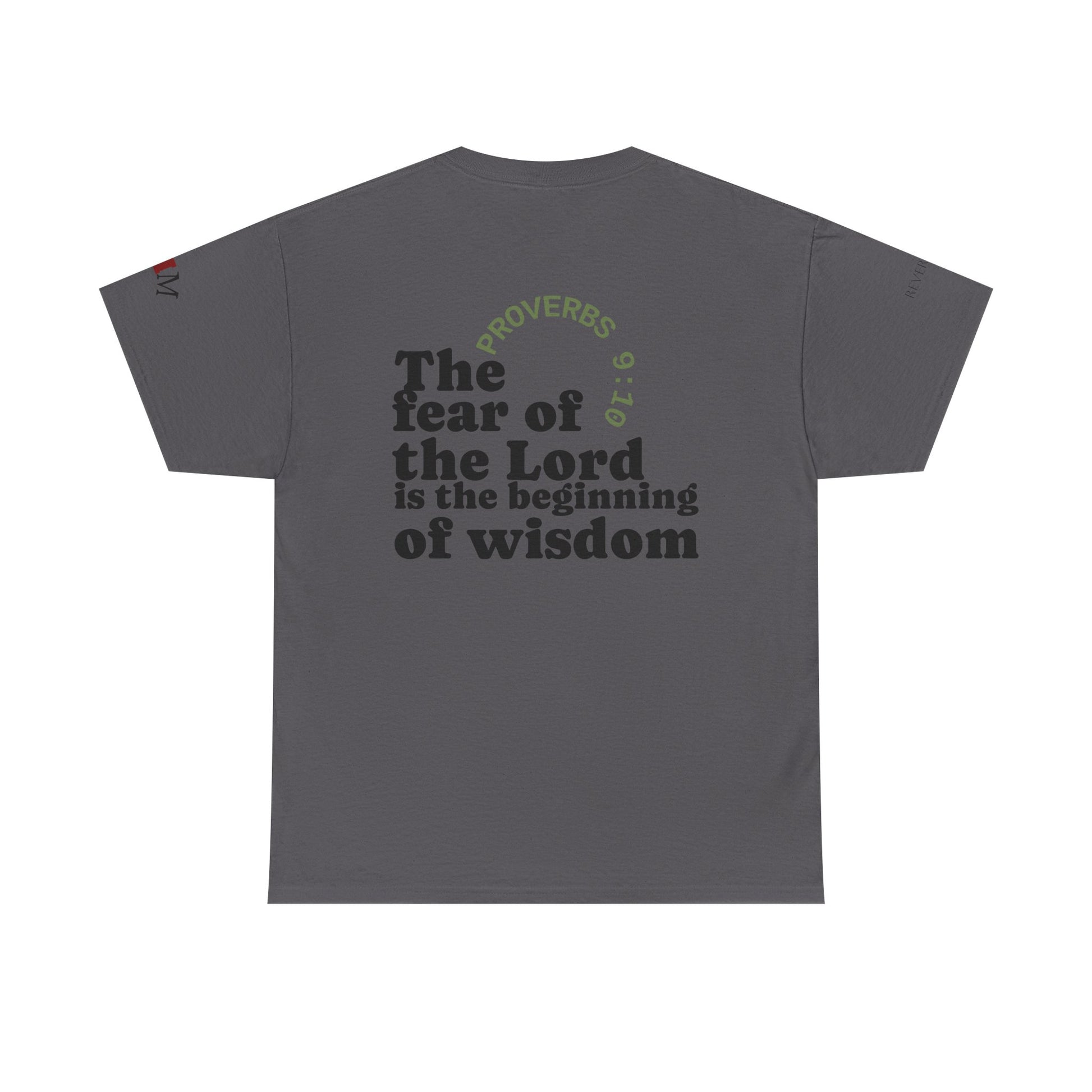- Classic relaxed fit with clear front “WISDOM” text and Proverbs 9:10 full-back design